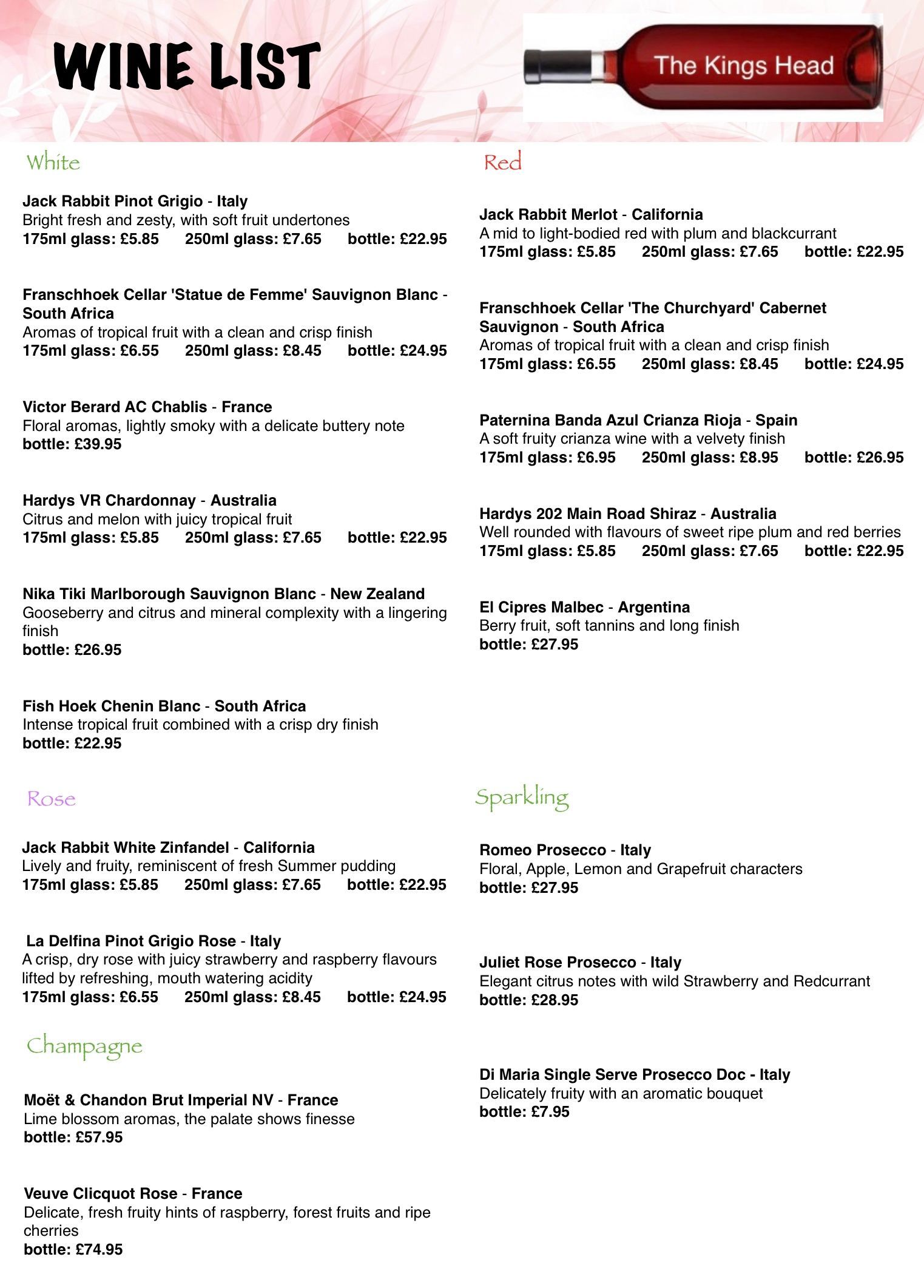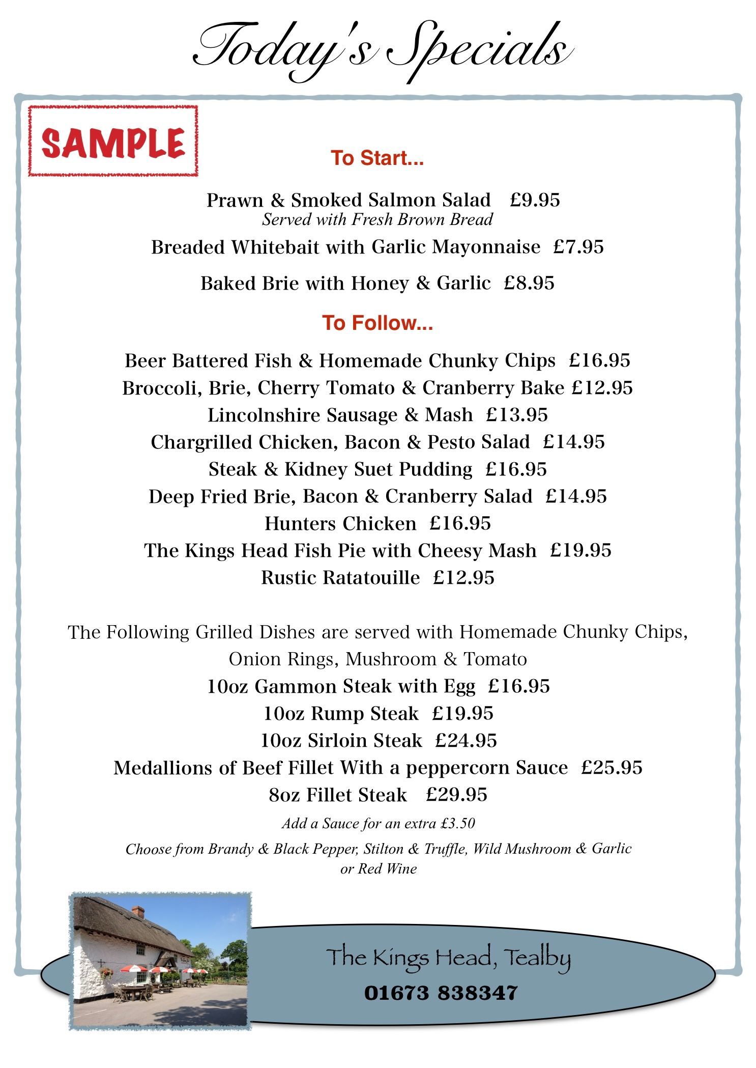 *The Menu’s below are EXAMPLES ONLY as it does change slightly every Sunday.*
