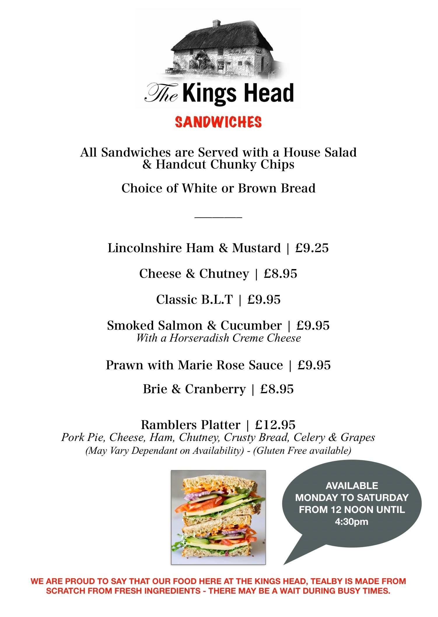 Our takeaway menu is available at the times shown at the bottom. This menu was introduced during the ‘lockdown’ period, but now runs all the time alongside our other menus.