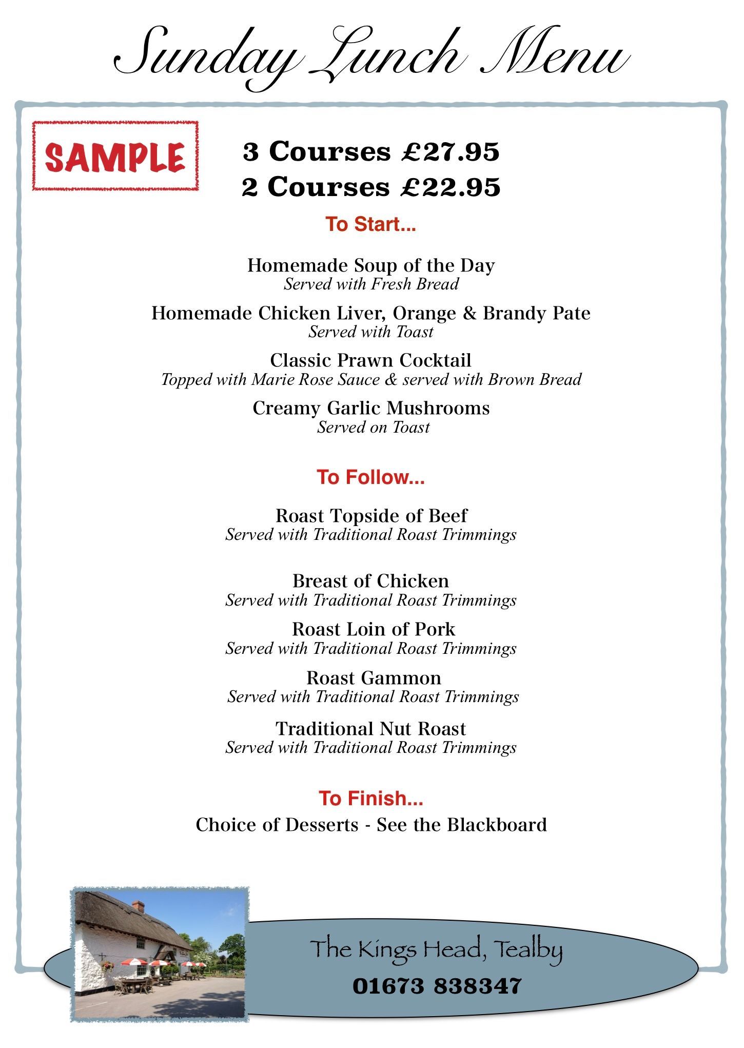 Sunday Lunch Menu